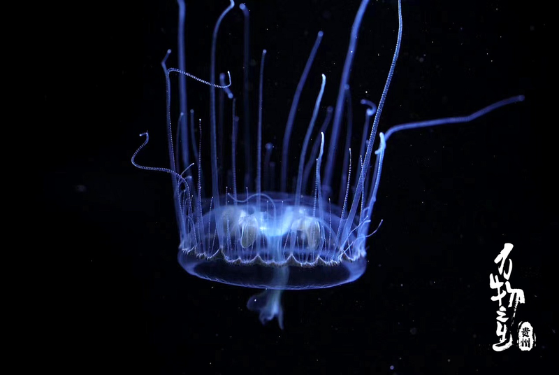 仪式上,提前路透了8K超高清镜头捕捉到的幽帘虫、桃花水母、洞穴真菌等珍稀物种,以及幽帘虫进食、寄生蜂照料后代等罕见的动物行为。