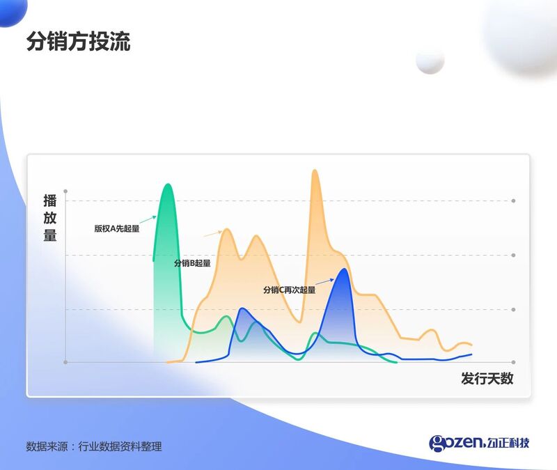 目前,投流分为版权方自投和与分销商机构合作,后者为其进行投放。据勾正分析,版权方自投流后,流量达到首个高峰后会呈衰退迹象;而分销商投流后,流量高峰则会交替出现。