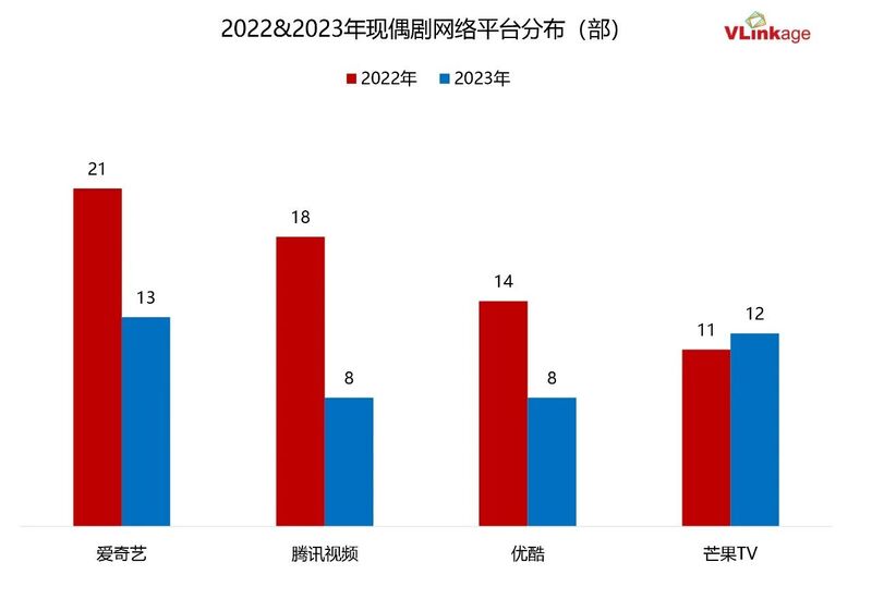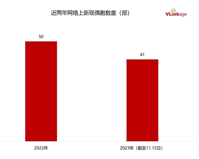 在审查方面“安全系数”较高的现偶剧,其实一直保持着相对稳定的数量输出。2022年,各大平台共排播50部现偶剧,而今年截止到11月中旬,也有41部现偶剧上线。这样的数量规模,在剧集市场总量的占比大概在十分之一。