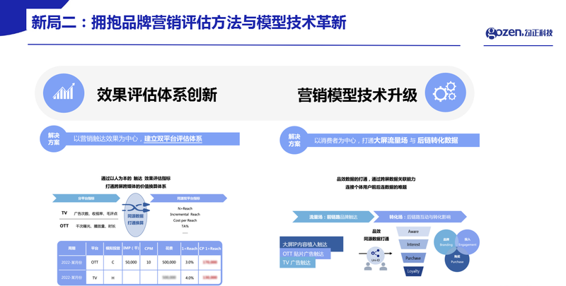 勾正科技高级副总裁姜岚表示,电视大屏可以通过技术手段将曝光与消费者触达后轨迹进行连接,从而为IPTV带来新的广告主预算回流的增长机会。目前主要有两个技术方案,一是效果评估体系创新,通过以人为本的触达、效果评估指标,打通跨屏跨媒体的价值换算体系,建立双平台评估体系,二是,以消费者为中心,进行品效数据的打通,通过跨屏数据关联能力,连接个体用户前后链路数据,打通大屏流量场和后链路转化数据。