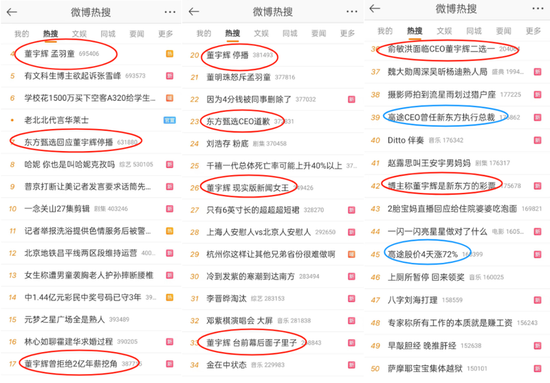 这两天,董宇辉“小作文”事件持续发酵,董宇辉与东方甄选的瓜滚雪球一样越来越大,参与者也从开始的粉丝和小编升级到东方甄选CEO乃至俞敏洪回应——2023年12月15日9点,微博热搜榜50条中带董宇辉的有9条,连带着关联方高途都有两条热搜。东方甄选作为2023年上半年抖音带货榜第1名,销售额高达40亿。此次纷争从掉粉到掉股价,恐怕最终还会影响其销售额。