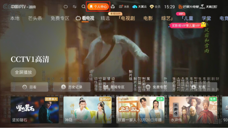 中国IPTV湖南电信天翼高清经过全面升级优化,“回看”“新闻专区”“免费专区”入口移至“看电视”页面,中央台、湖南台回看按钮清晰呈现,新闻专区入口可快速进入央视新闻或湖南新闻联播点播内容免费看。