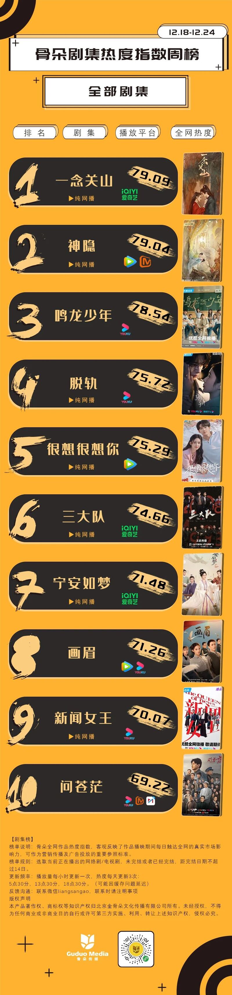 12月18日-12月24日剧集周榜数据解读: