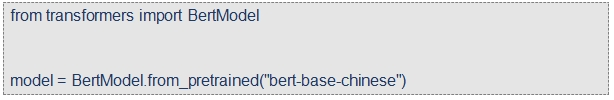 举个例子,如果你在进行中文文本处理任务,你可能会选择加载 bert-base-chinese 模型,代码如下: