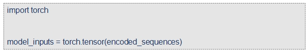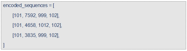 这是一个编码后的序列列表,也就是一个二维列表。张量要求数据是矩形形状的(可以想象成矩阵)。这个“数组”已经满足这个要求,所以我们可以轻松地将其转换为张量: