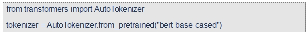例如,如果我们想要加载与BERT模型使用相同检查点训练的BERT分词器,我们可以使用BertTokenizer类,如下所示: