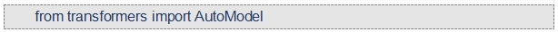 这行代码从 transformers 库中导入了 AutoModel 类。AutoModel 类是一个通用类,用于从给定的检查点(checkpoint)加载模型,它会自动判断模型的类型(例如 BERT、GPT-2 等)。