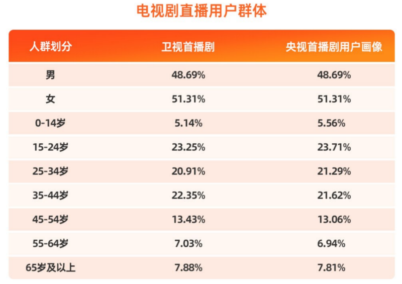 以灯塔专业版《2023年度剧集市场报告》中的台播剧为例。数据显示,青年女性是台播剧的观众主力,女性占比为51.31%;同时,不论央视还是卫视,其首播剧用户群体结构中,15-24岁区间均为占比最高的人群。尤其值得一提的是,央视在0-34岁各年龄段用户占比均超越地方卫视,显示出既有全民性又有年轻化的趋势。