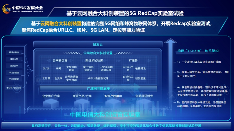 为积极贯彻落实工信部《关于推进 5G 轻量化(RedCap)技术演进和应用创新发展的通知》要求,中国电信研究院在中国电信集团云网发展部的指导下,基于中国电信云网融合大科创装置开展RedCap相关功能和性能测试的试验。本次试验利用大科创装置多厂家、全互联的移动网试验能力,完成中兴、华为、爱立信三个无线网主设备厂家以及中兴、华为两个核心网主设备厂家的相关测试。测试结果表明,5G RedCap(R17)相比5G eMBB ,初期对终端复杂度和成本能降低60%,功能方面保留了5G基本能力,还支持切片、URLLC、与Legacy UE 兼容等优点,在单用户峰值、小区容量、时延等性能方面要优于 LTE Cat4。本次试验解决了终端、无线网、核心网对接的兼容性问题、以及专用 BWP 同频切换等问题,验证了中国电信现网引入 5G RedCap 能力的技术方案,推动现网主要厂家设备成熟,为集团和各省公司开展 RedCap 外场试验和试商用拓展打下基础。