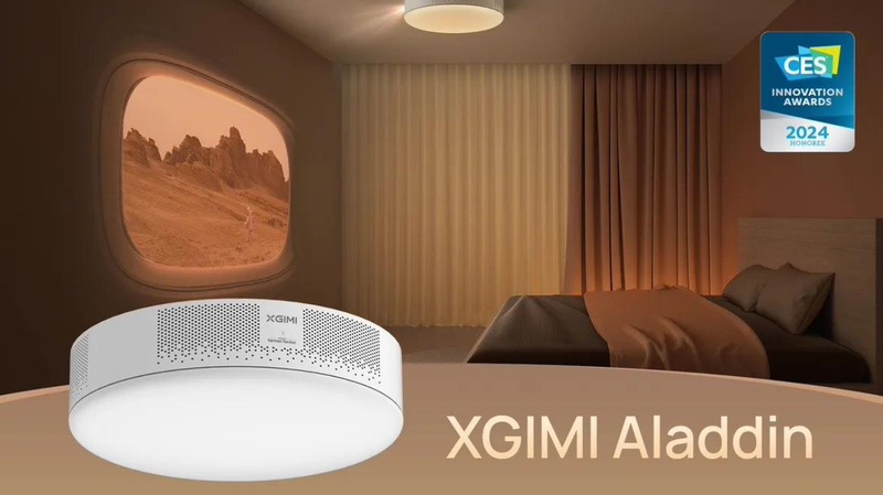 最好玩的一款投影仪是极米展出的「二合一」投影设备—— XGIMI Aladdin,这是一款将吊顶与投影相结合的产品,可以作为吊顶灯使用。极米表示,这款产品支持投射 100 英寸画面,用户可以使用投影仪遥控器或手机客户端控制灯具,内置 Harman Kardon 扬声器,关机也能放音乐,此外还有拥有匹配室内场景的动态壁纸、环境氛围音、儿童互动书籍等特性。这款产品很好的将功能性和装饰性加以平衡,至少笔者是颇为心动的。