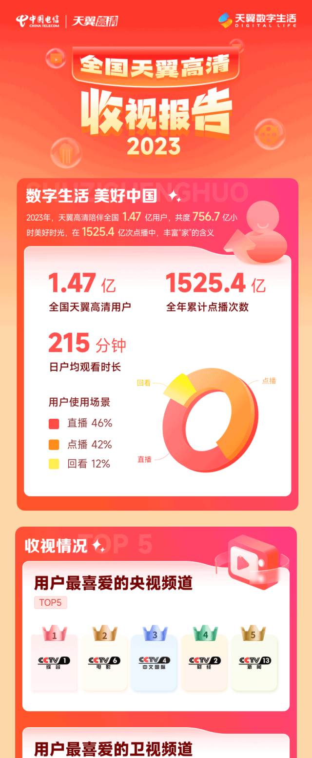 【流媒体网】摘要:2023年,天翼高清陪伴全国1.47亿用户,共度756.7亿小时美好时光。