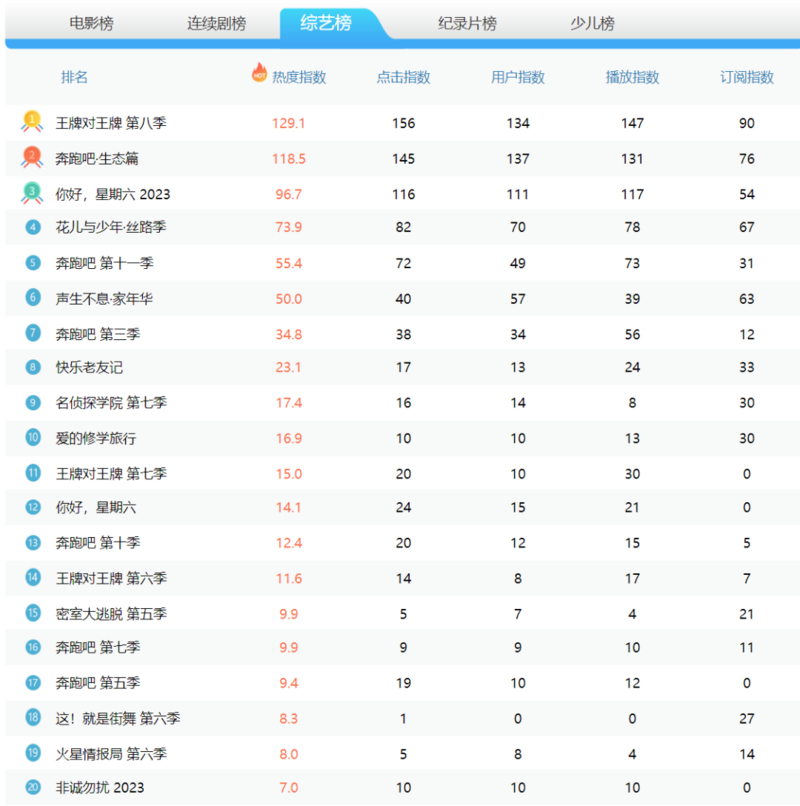 ▶ 《你好,星期六 2023》已连续六个月进入TOP20排行榜前三名,热度不减、精彩不断!