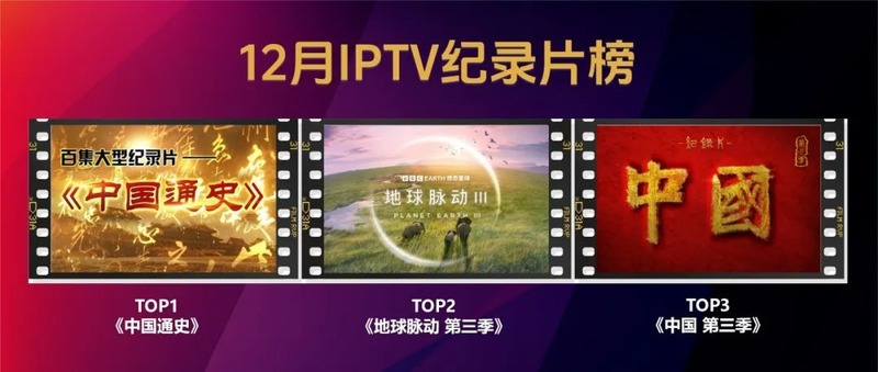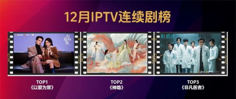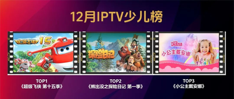 拥有3.99亿家庭用户的中国IPTV平台已经成为国内主流视听平台,IPTV平台数据对视听产业各环节都具有重要意义。通过IPTV数据排行榜,可以和产业链上下游的内容制作方、发行方以及第三方数据机构、营销机构积极展开合作,为整个行业发展贡献IPTV平台的一份力量。