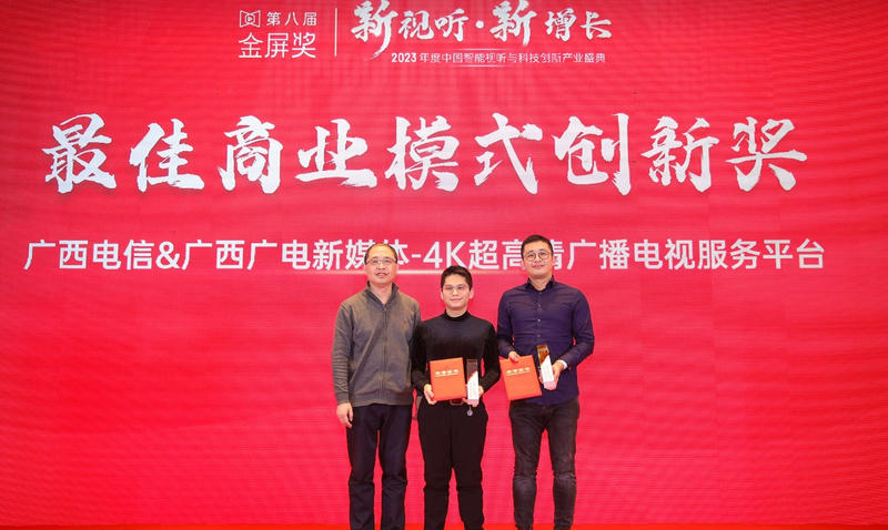 在本次颁奖盛典上,广西电信&广西广电新媒体-4K超高清广播电视服务平台荣获产品类奖项中最佳商业模式创新奖。