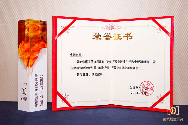 在本次颁奖盛典上,欢网科技-快应用荣获产品类奖项中最佳大屏应用创新奖。