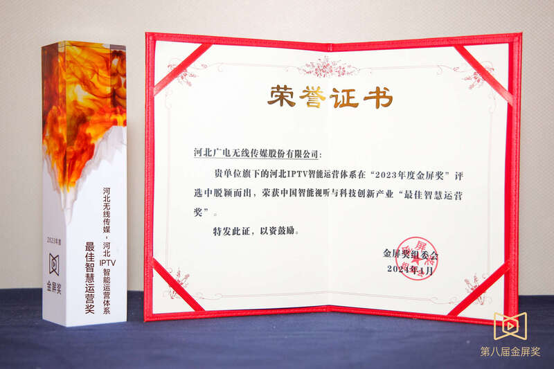 在本次颁奖盛典上,河北无线传媒-河北IPTV智能运营体系荣获产品类奖项中最佳智慧运营奖。