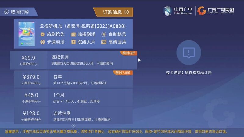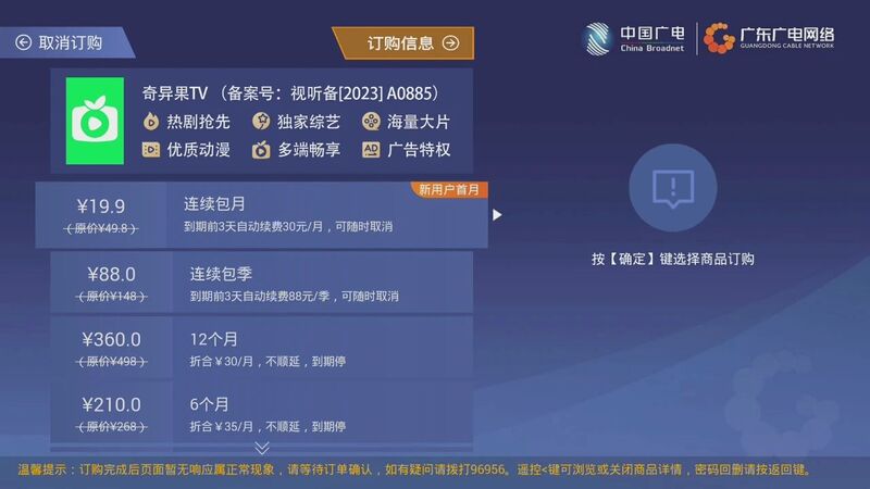 广东广电:广电视频专区“爱优腾”新春线上订购特惠