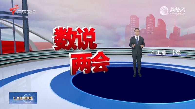 广东广播电视台将AI技术深度嵌入到今年的两会报道中,融媒栏目《AI主播小强数说两会》创新性地推出了“数字人小强”,在三维虚拟演播室中加入CG动画和三维虚拟动画,用“真人”、“真声”、“真动作”、“真数据”呈现逼真的视觉效果,清晰易懂解读报告,为今年的两会报道增添了全新的维度。