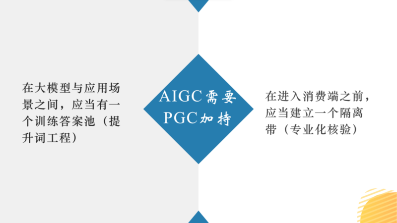 我认为,文化机构和文化人无需感到自卑。我们手头掌握着数据,如果仅仅依靠出售这些数据来赚取收入,那只是小钱。如果我们拥有数据,我们应当利用它们来开发新产品和提供新服务,这是我们的发展方向。现在大家都在谈论不同的生产方式,从PGC(专业生成内容)到UGC(用户生成内容),再到AIGC(人工智能生成内容)。但我们认为,在进入AIGC阶段后,仍然需要PGC的加持。因此,我们觉得在大模型和应用场景之间应该建立一个训练答案池。在这方面,文化机构具有天然优势。在进入消费端之前,我们必须建立一个隔离带,即专业化的核验。我们首先要面向企业(ToB),然后再面向消费者(ToC),这可能是我们下一步发展的方向。