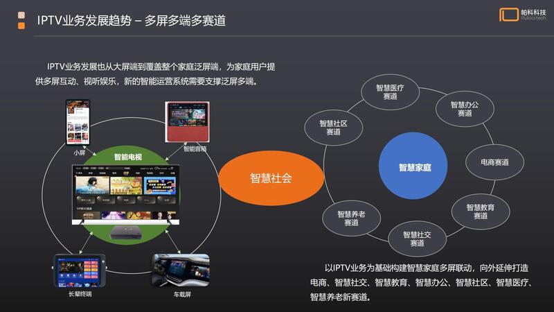 【流媒体网】摘要:基于技术和IPTV底座能力、内容,也在向垂直类的业务发展,如养老、智慧社区等赛道,最终形成智慧化社会。
