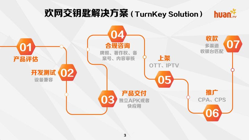 【流媒体网】摘要:欢网科技率先提出《欢网交钥匙解决方案》,基于自身资源和技术能力的整合,为用户提供从产品评估、开发测试、产品交付、合规咨询、上架、推广到收款的一站式、全链条服务。