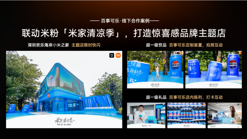 百事可乐与小米之家携手,以「米家清凉季」为主题,打造「超一级夏天」品牌快闪店。百事可乐蓝色席卷小米之家,瞬间点燃夏日热情。消费者在现场互动中感受品牌魅力,百事可乐定制装置与打卡环节,进一步增强了参与感和体验感,提升品牌吸引力与忠诚度。用户自发分享活动瞬间,无形中为品牌进行了口碑传播帮助品牌扩大影响力。这种线上线下结合的营销方式,触达不同消费群体,传递品牌对品质、体验与创新的重视,与年轻人同频共振,有效地提升了品牌形象与价值,增强品牌的竞争力。