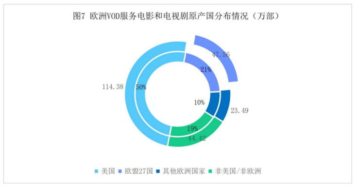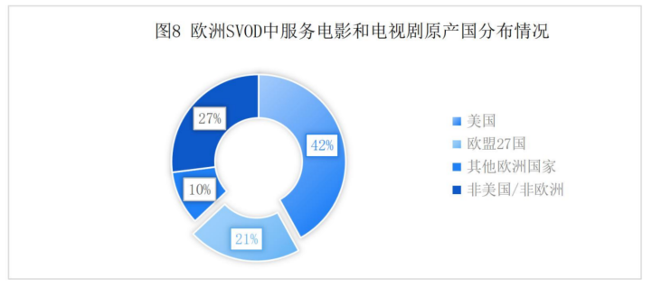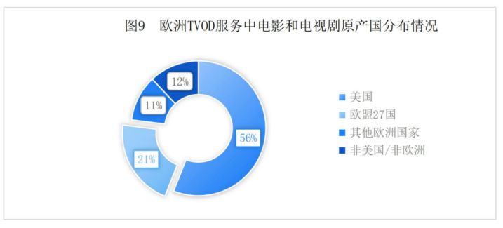 非美国/非欧洲的作品,在SVOD服务中占比最高,为27%,在TVOD服务中占比12%,在FOD服务中占比14%。