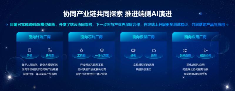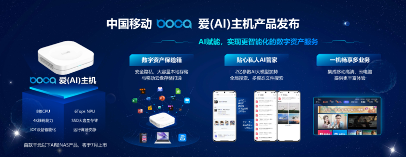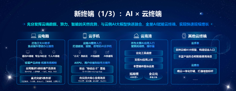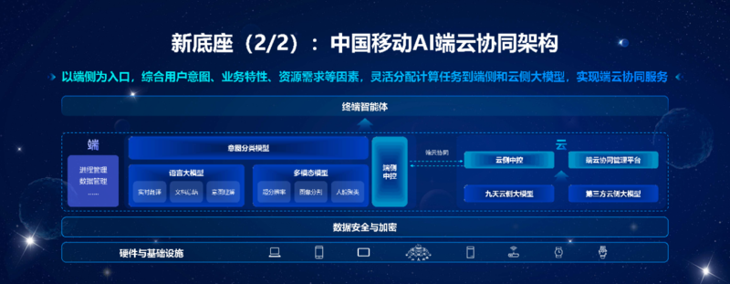 会上发布了AI主机、云算终端等系列新产品及《中国移动生成式AI终端产品指引》,从发展趋势、关键技术、终端形态、应用生态、架构体系等多维度解析AI终端,并首次提出AI终端端云协同架构体系,发挥端侧小参数模型和云侧大参数模型各自优势,为用户提供更加便捷、更低成本的AI终端使用体验。