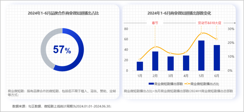 2024年H1微短剧备案数、播出数双双增长,品牌合作商业微短剧数量同比增长68%;