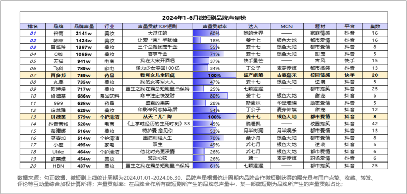 榜单丨谷雨品牌声量登顶,百多邦、贝德美单剧投放博得高声量上榜