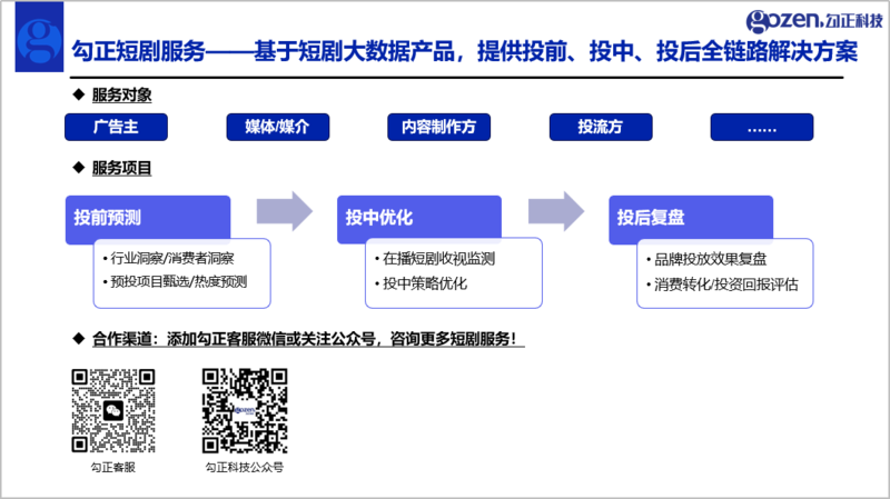勾正短剧服务丨基于短剧大数据产品,提供投前、投中、投后全链路营销解决方案