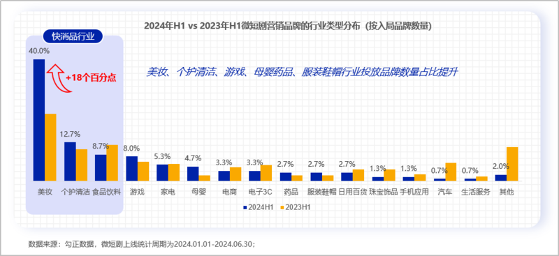 70个品牌、15个行业首次试水微短剧营销,美妆、个护、食饮3大快消行业领先;