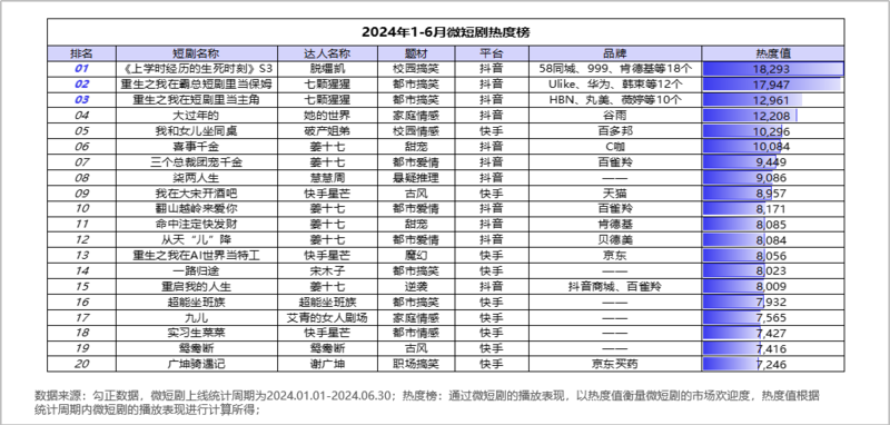 榜单丨流量与商业价值正相关,热度TOP10中商业微短剧揽获9席