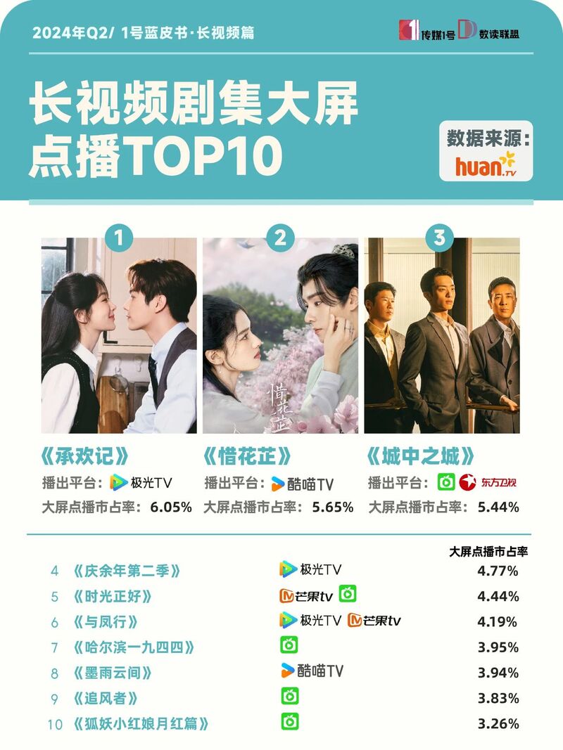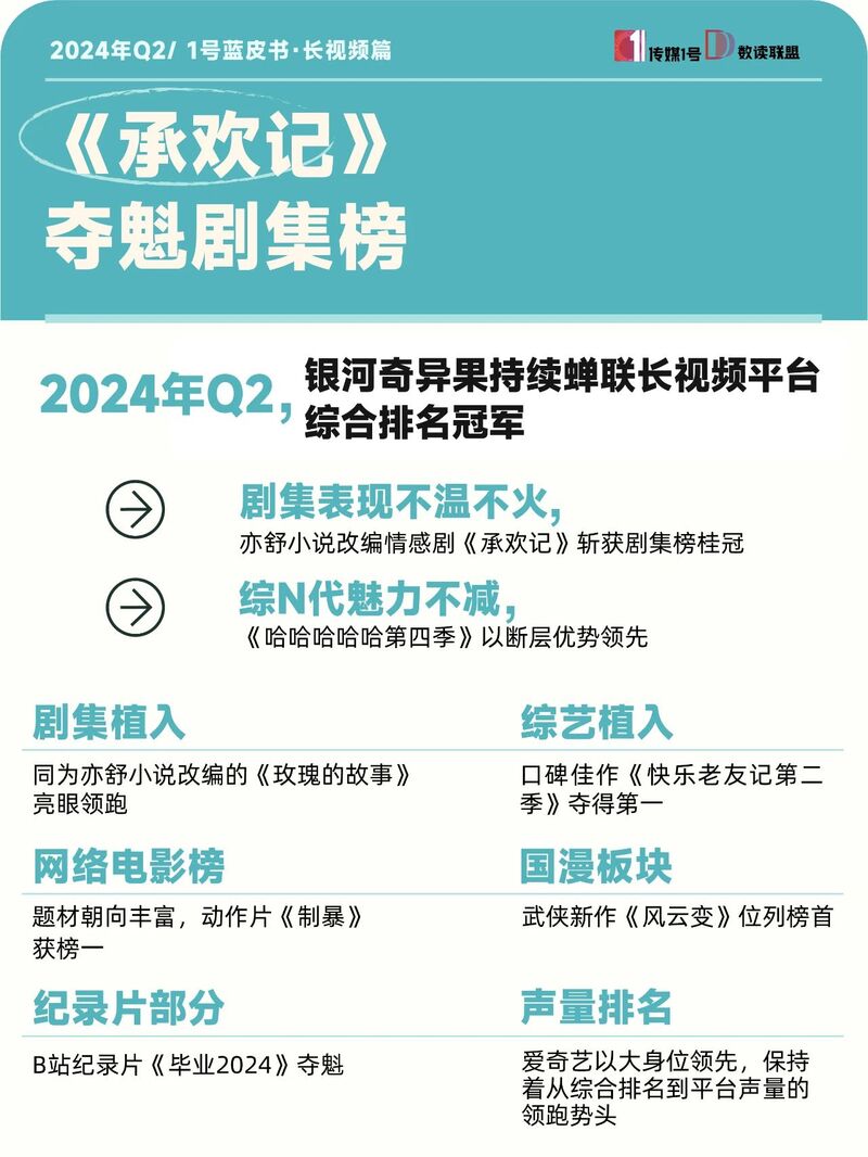 1号蓝皮书2024年Q2长视频篇|《承欢记》夺魁剧集榜