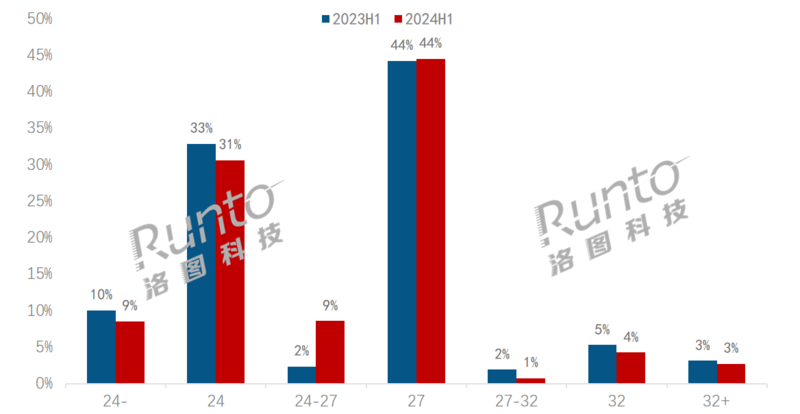 2024H1 中国显示器线上市场尺寸段结构及变化