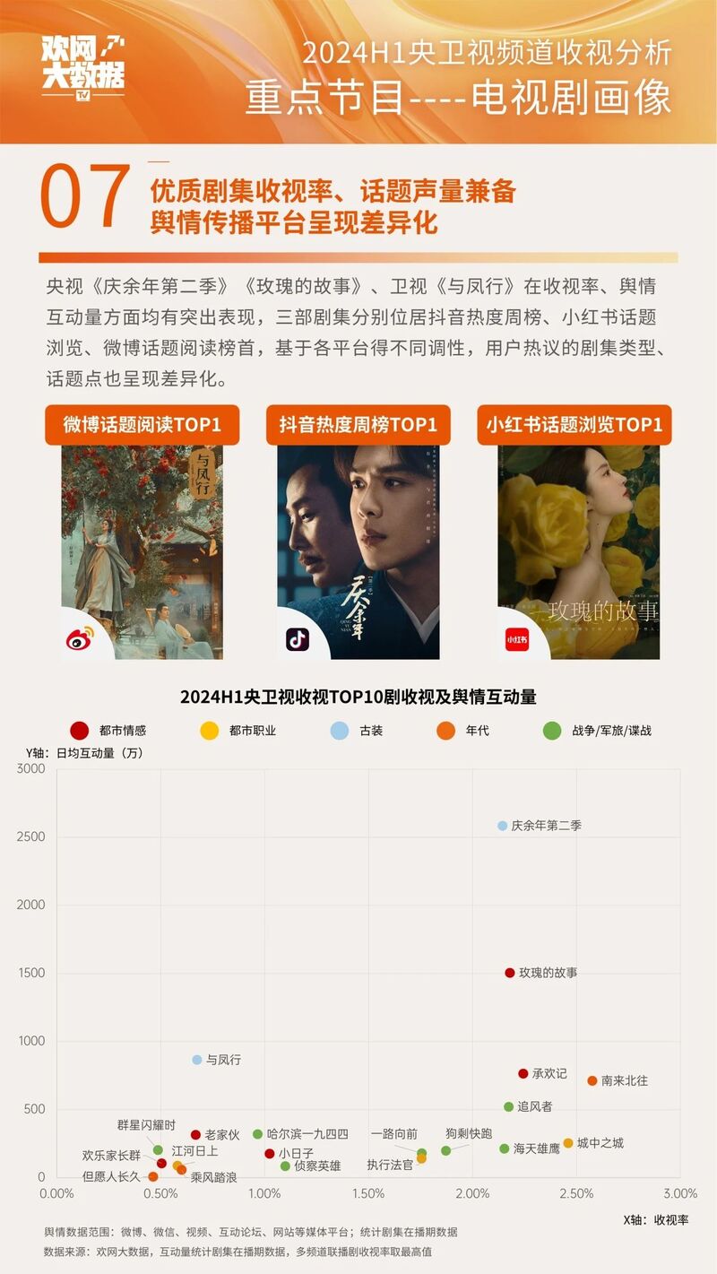 欢网大数据推出「 欢网大数据2024H1央卫视频道收视分析 」报告,分别从【央卫视频道收视分析】【综艺播出表现分析】【剧集播出表现分析】【央卫视广告投放分析】四个板块,详细回顾上半年央卫视频道的整体情况。