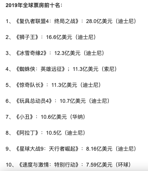 要知道在2019年迪士尼电影的巅峰期,其全球总票房曾高达132亿美元,有7部影片突破10亿美元,迪士尼和旗下公司出品的电影包揽了全球票房榜前五,在全球票房榜TOP10中占了8部……以迪士尼的IP储备和创意能力,并非没有重抵这一巅峰的机会。
