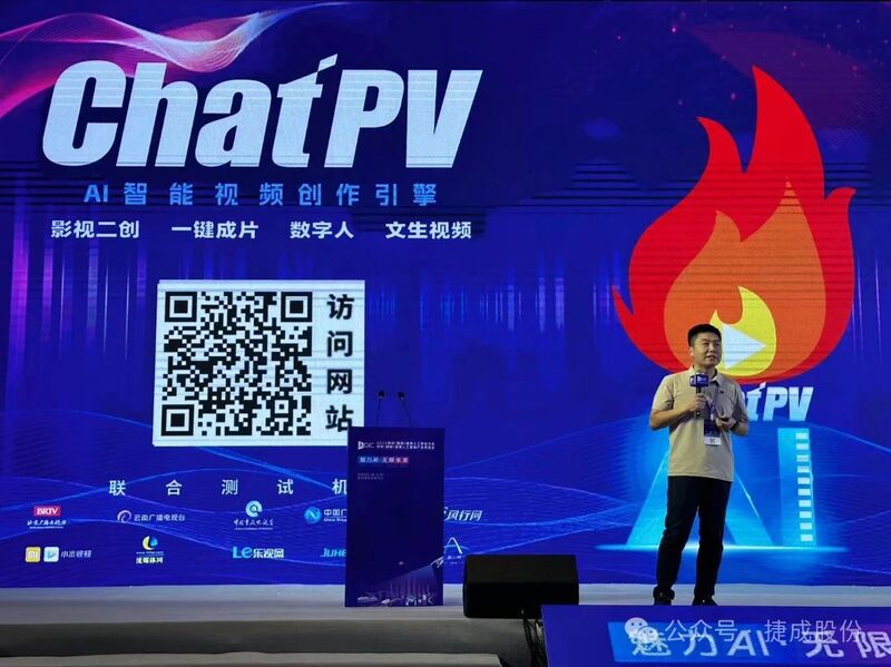 “我们的AI智能创作引擎ChatPV已经正式发布并上线公测,根据视频节目制作、数字人播报、影视短视频二创、视频广告生成等各类内容创作场景,提供面向音视频专业生产机构解决方案和普通视频创作者在线云服务等各类AIGC工具。”申林向大会重点推荐了ChatPV,并表示捷成股份将打造「智能体市场」,丰富各类视频创作工具,让内容创作专业简单。