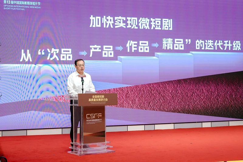 在8月30日由国家广播电视总局网络视听司指导的“全国微短剧高质量发展研讨会”上,广电总局网络视听节目管理司司长冯胜勇以《加快实现微短剧从“次品→产品→作品→精品”的迭代升级》为题发表主旨讲话,认为当前行业生态日渐清朗,发展总体态势明显好转,野蛮生长现象得到有效遏制,进入了转型迭代、提质升级的新阶段。另外,微短剧在内容质量、商业模式、精品创作和传播效果上,距离实现高质量发展还有不小差距。