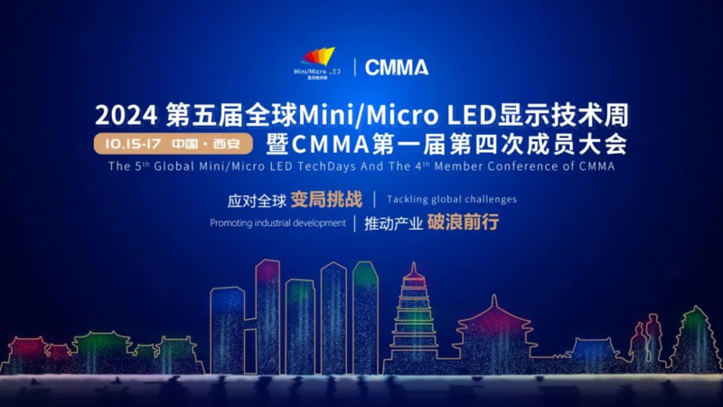 由中国电子视像行业协会指导,中国电子视像行业协会Mini/Micro LED显示产业分会(CMMA)主办,利亚德集团和西安诺瓦星云科技股份有限公司协办的2024第五届全球Mini/Micro LED显示技术周暨CMMA第一届第四次成员大会将于2024年10月15日-17日在中国·西安举办。