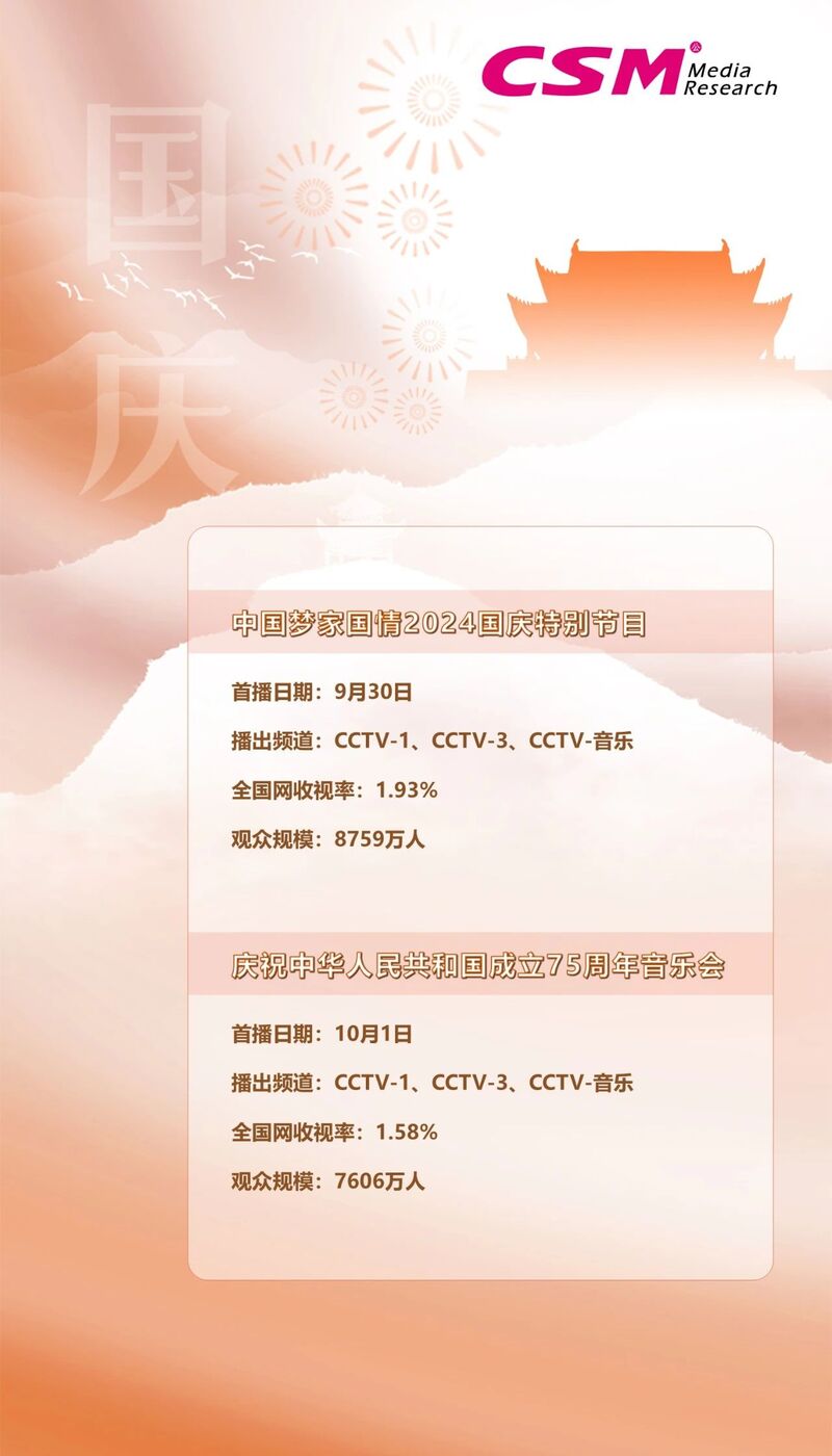 总台在弘扬主旋律、传播正能量方面始终站在C位。10月1日国庆当天,《庆祝中华人民共和国成立75周年音乐会》再度引爆荧屏,于CCTV-1、CCTV-3、CCTV-15以及央视频、央视网、云听等新媒体平台,还有音乐之声、经典音乐广播、文艺之声等多家电台同步播出。音乐会上,管弦乐《第一交响序曲》与大合唱《黄河大合唱》交相辉映,气势恢宏;《祖国颂歌》铿锵有力,激荡人心。悠扬的旋律颂扬了祖国的壮丽山河与人民的幸福生活。