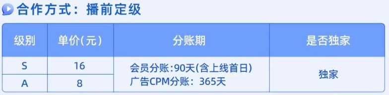 除了引入新的计算维度,此次分账新规最大的变化就是每集单价大幅度提升,并且将合作方式细分为了播前定级和播后定级。播前定级由2023年的S级单价6元、A级单价4元,提升至2024年的S级单价16元、A级单价8元,涨幅分别为167%和100%。