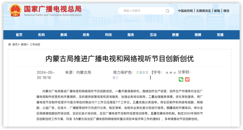 内蒙古广电局推进广播电视和网络视听节目创新创优。