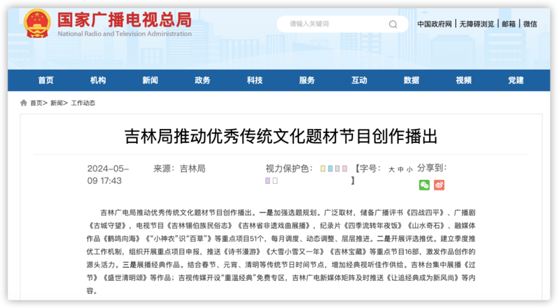 吉林广电局推动优秀传统文化题材节目创作播出。