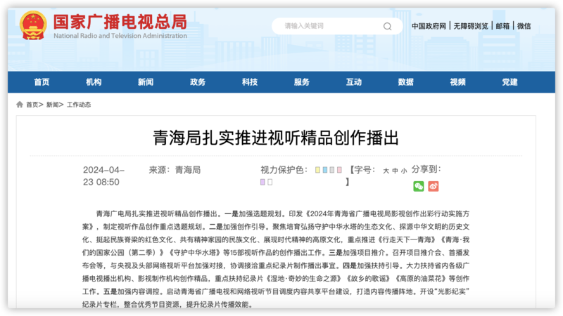五是加强内容调控。启动青海省广播电视和网络视听节目调度内容共享平台建设,打造内容传播阵地。开设“光影纪实”纪录片专栏,整合优秀节目资源,提升纪录片传播效能。