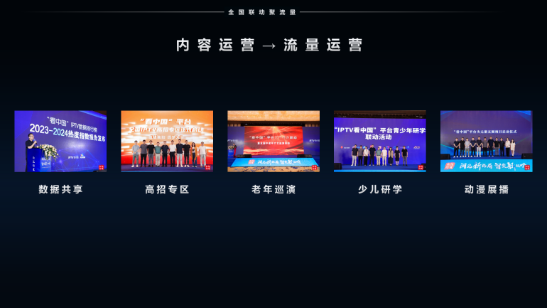 在今年数据共享部分,除了每月持续发布IPTV数据排行榜单,为各省IPTV运营和版权引入提供参考外,平台依托数据共享机制开展内容宣发合作,为各省实现创收。同时在广电总局的指导下,对“看中国”平台数据进行迭代升级,稍后的环节也会对数据成果做进一步的分享。