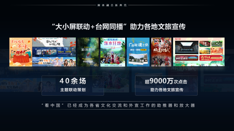 依托平台,我们开展了40余场主题联动策划,其中包括9次直播宣传,“看中国”专区在全国的点击次数超9000万次。从年初春节美食季、冰雪季,到暑假旅游季,东北文旅出大招、广西三月三特别报道、云南各少数民族的传统节日直播盛况、各省重点打造的文旅宣传节目等都通过“看中国”专区进行展播,实现了全国文旅流量的释放和互换。