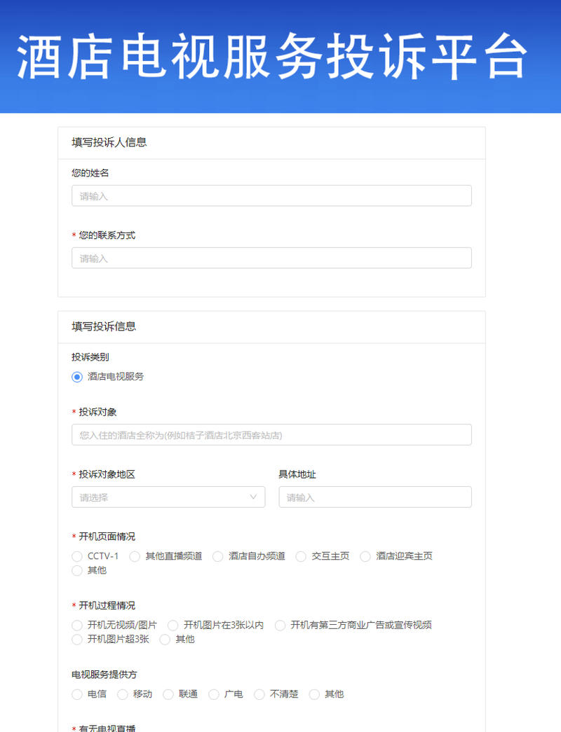 酒店电视服务投诉平台上线!点击查看投诉指引