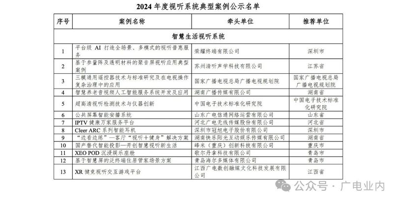 广电总局等三部门联合发布:2024年度视听系统典型案例拟入选名单