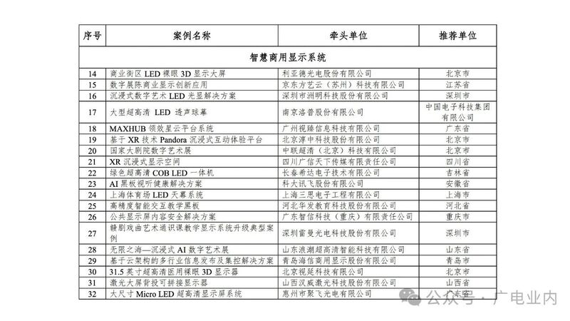 根据《工业和信息化部办公厅 国家广播电视总局办公厅 国家知识产权局办公室关于征集2024年度视听系统典型案例的通知》(工信厅联电子函〔2024〕325号),经地方推荐、专家评审,现将拟入选2024年度视听系统典型案例名单进行公示,请社会各界监督。如有异议,可于公示期内提出书面反馈意见。并明确提出异议的事实依据、真实姓名、工作单位和联系方式等。